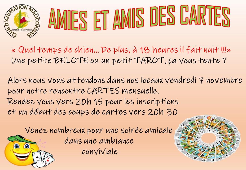 Le document "PAYS MALICORNAIS ACTIVITES" vous liste les lieux et dates des différentes manifestations organisées par notre "SECTEUR" dans les communes avoisinantes; amateurs de BELOTE, TAROT, PETANQUE, MARCHE, DANSE vous trouverez votre bonheur pour passer d'agréables moments.