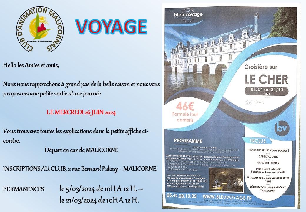 Depuis 1989, la fédération « GENERATIONS MOUVEMENT Ainés Ruraux » de la Sarthe fait découvrir à ses adhérents, les cantons (ancienne découpe administrative) de son département. Pour 2023, c’est le « PAYS MALICORNAIS » qui avait été retenu comme destination. Dès septembre 2022, les différents CLUBS constituant cet ancien canton se sont mis au travail. Il a fallu quelques réunions, parfois bien animées pour étudier et mettre au point dans les moindres détails, l’organisation de cette manifestation ... CLIQUEZ ICI POUR DECOUVRIR CETTE AVENTURE.